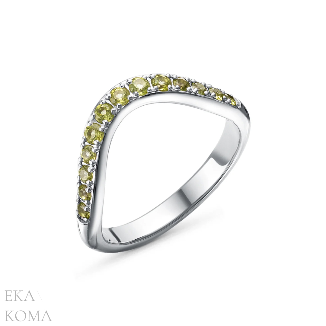 Кольцо в форме волны украшенное маленькими камнями. Кольца красиво смотрятся в паре. Варианты камней: хризолит, горный хрусталь, голубой топаз.